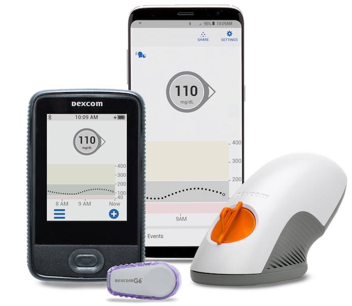 Ресивер это устройство с сенсорным экраном, которое может принимать показания сахара крови от трансмиттера Dexcom G6.