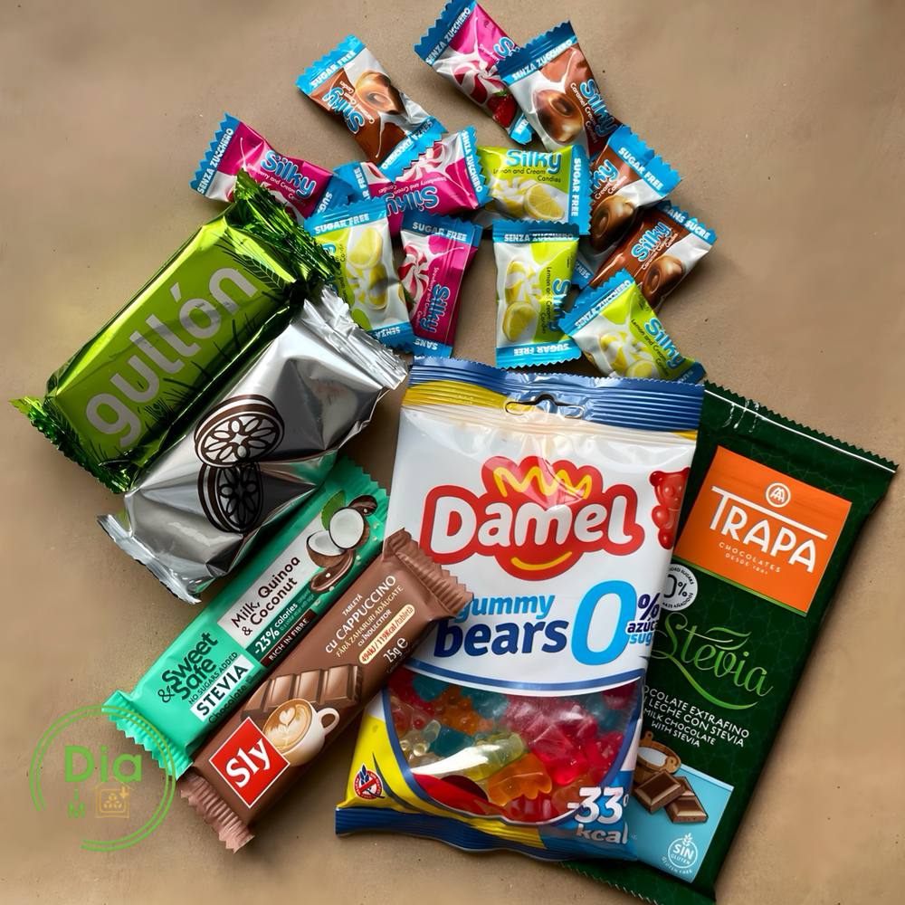 Подарунковий набір “Пакуночок радості” — це збалансована підбірка сучасних солодощів без зайвого цукру, створена спеціально для тих, хто хоче подарувати приємність без шкоди. У наборі зібрані популярні бренди, перевірені часом і діабетичною спільнотою: іспанський шоколад Trapa, м’які жуйки Дамел, легкі льодяники Silky, хрусткі стіки печива та два різні батончики, які закривають і шоколадну, і кокосову тягу.