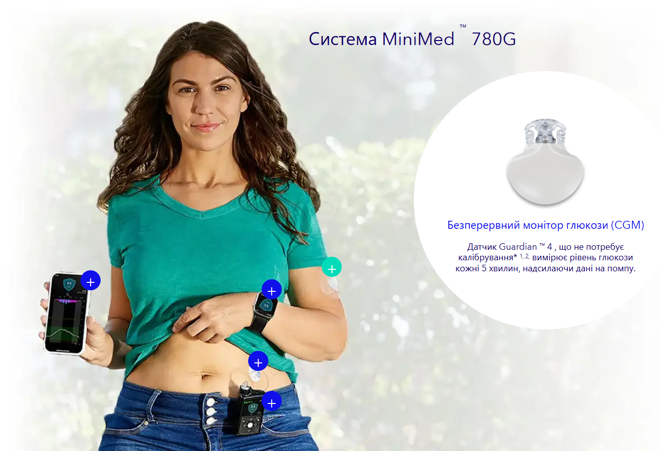 Сумісність із помпами Medtronic та додатком Guardian Connect.