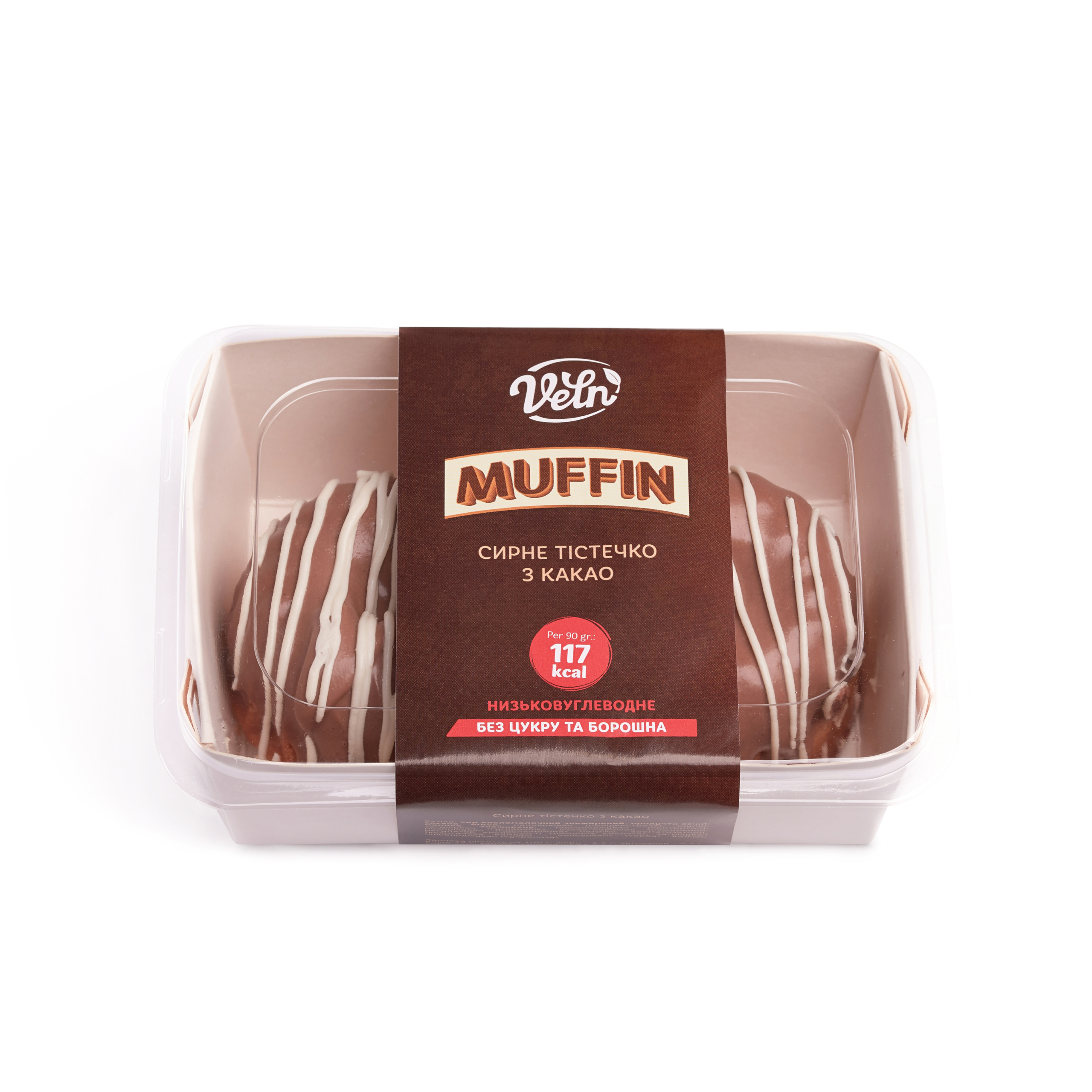 Сирне тістечко мафін з какао VELN — інноваційна дієтична альтернатива класичним мафінам. Воно без цукру і без пшеничного борошна, що робить його відповідним варіантом для тих, хто контролює рівень глюкози, слідкує за вуглеводами чи просто хоче солодке без шкоди. Виготовлено на основі сиру, з додаванням какао для смаку шоколаду. Має м’яку, приємну текстуру, з балансом білків та контрольованим складом жирів та вуглеводів.